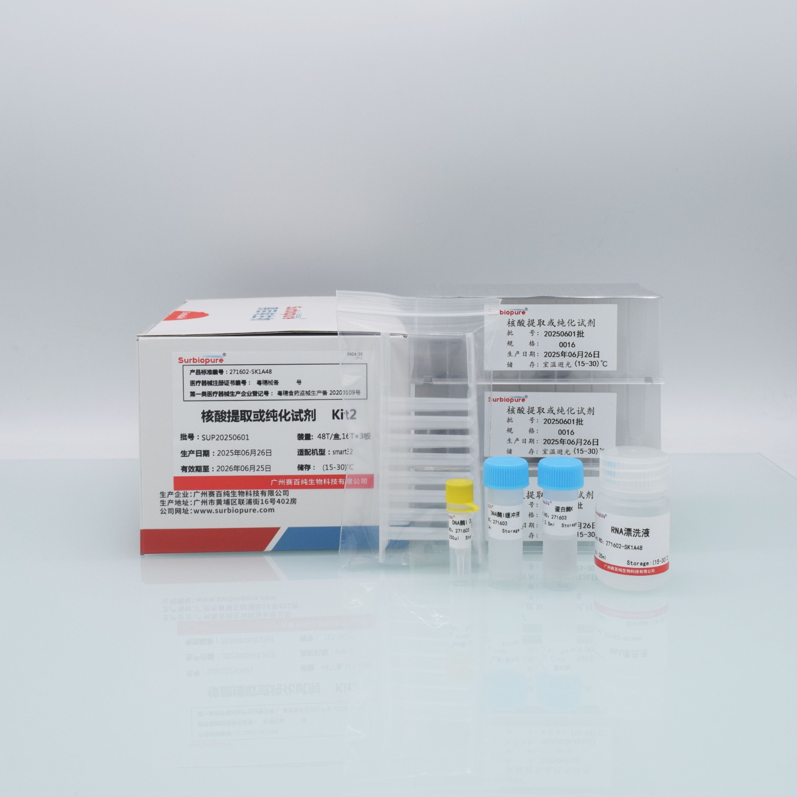 【預(yù)期用途】用于核酸的提取、富集、純化步驟。其處理后的產(chǎn)物用于臨床體外檢測使用。產(chǎn)品組成中不含可與樣本特異性結(jié)合的抗原、抗體、探針成分。